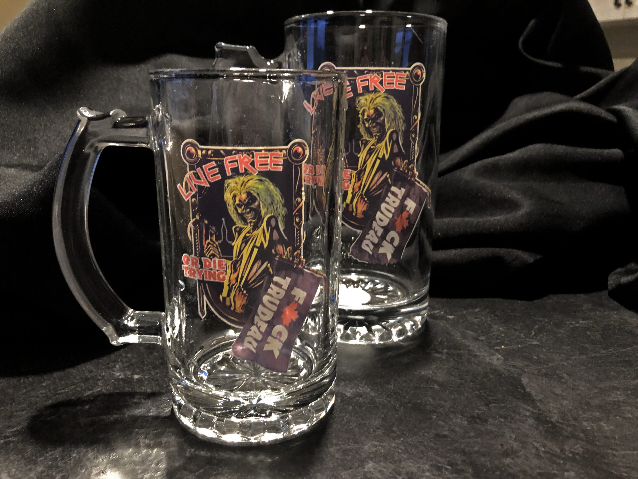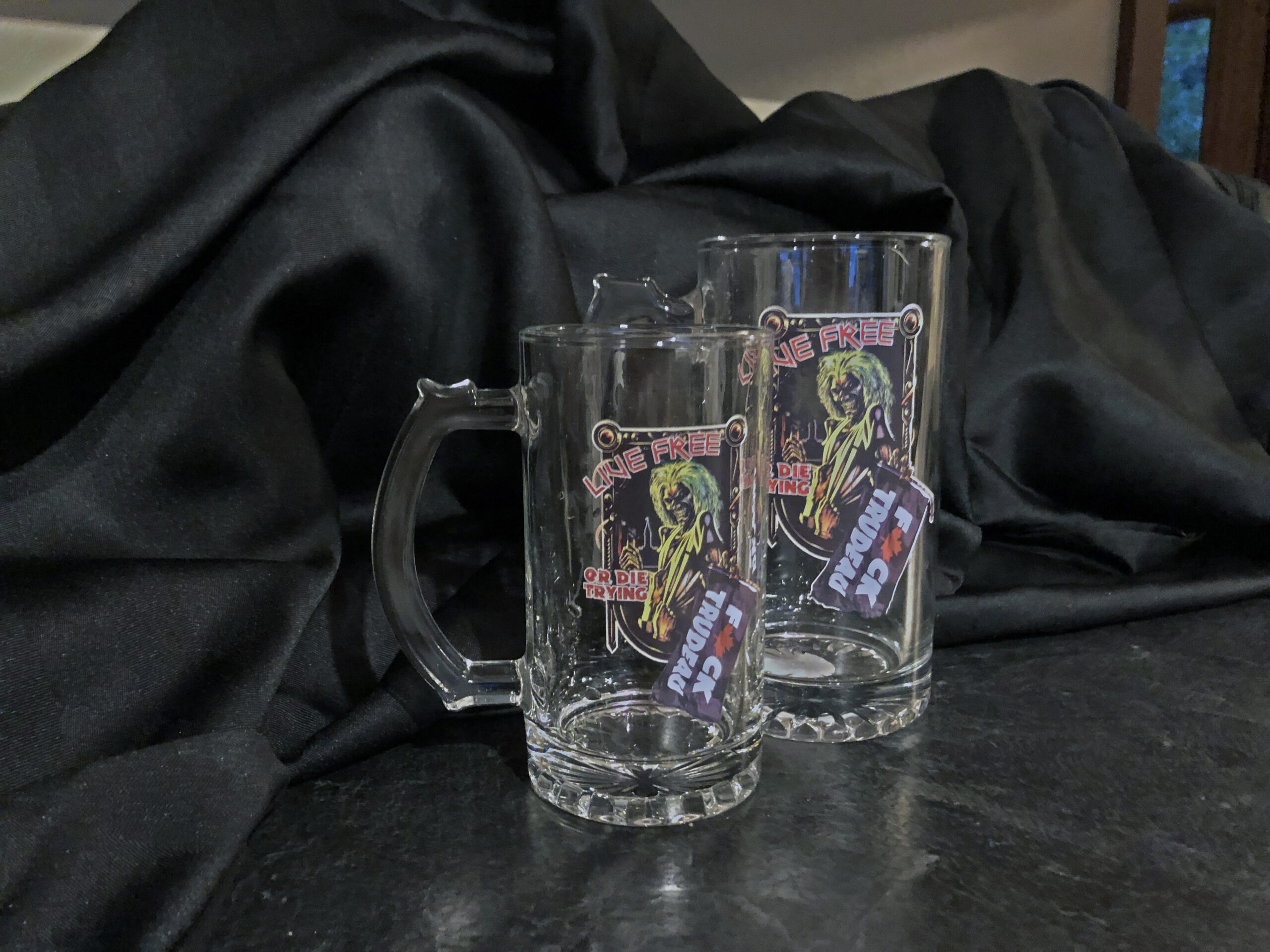BEER MUGS -Your choice of 16 oz or 24 oz sizing. These are the perfect addition to any home bar, man cave … or at your next fancy dinner party!
